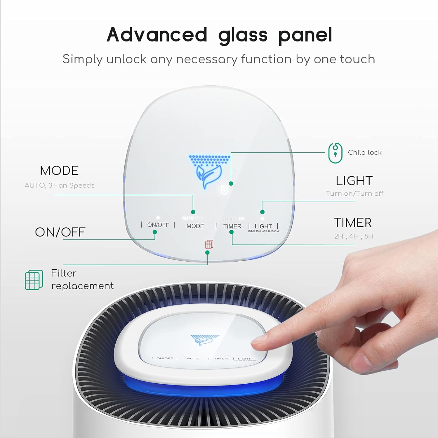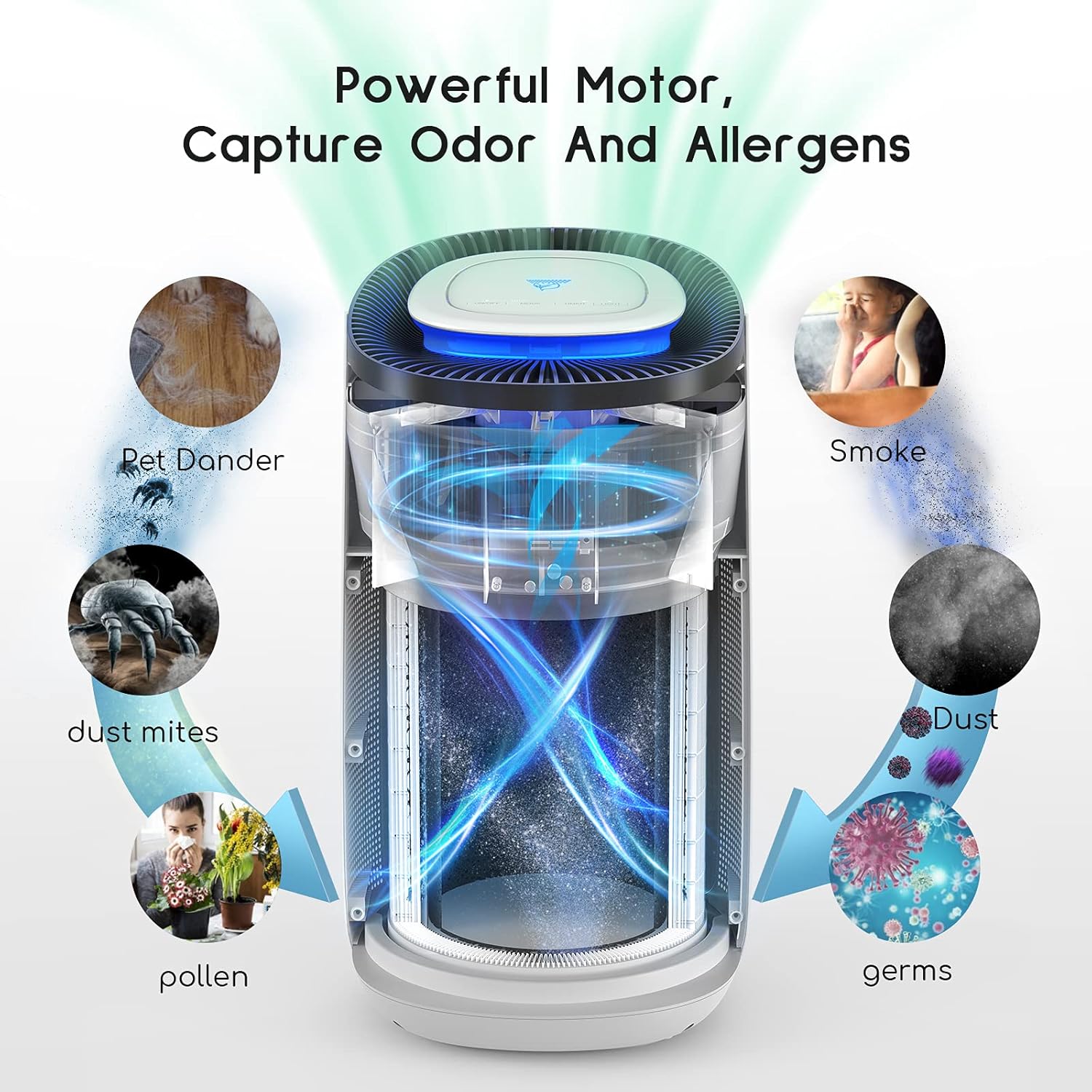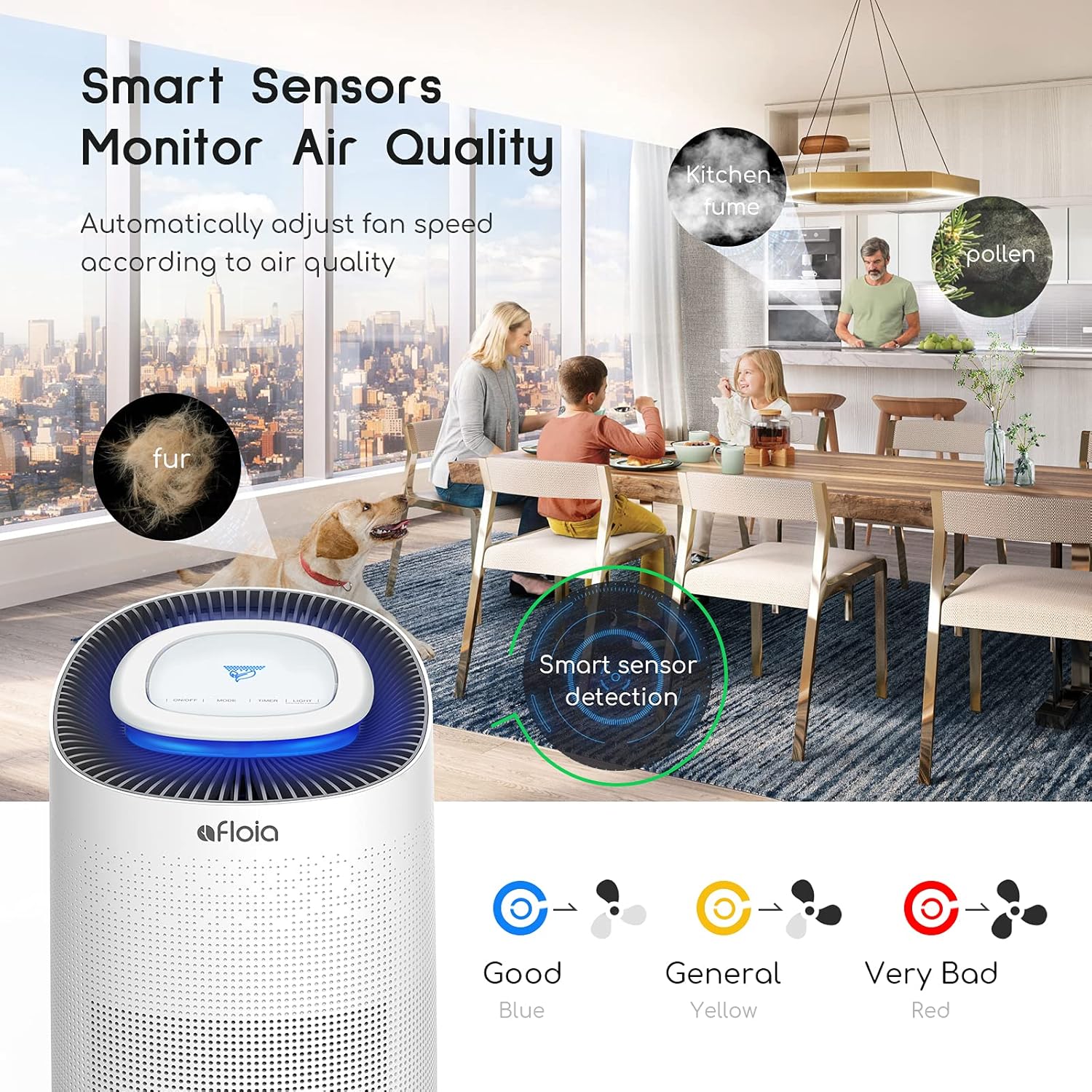 Afloia Luftreiniger H13 HEPA Filter 360° Luftqualität Anzeige Luftentfeuchter für Allergie Pollen Geruch