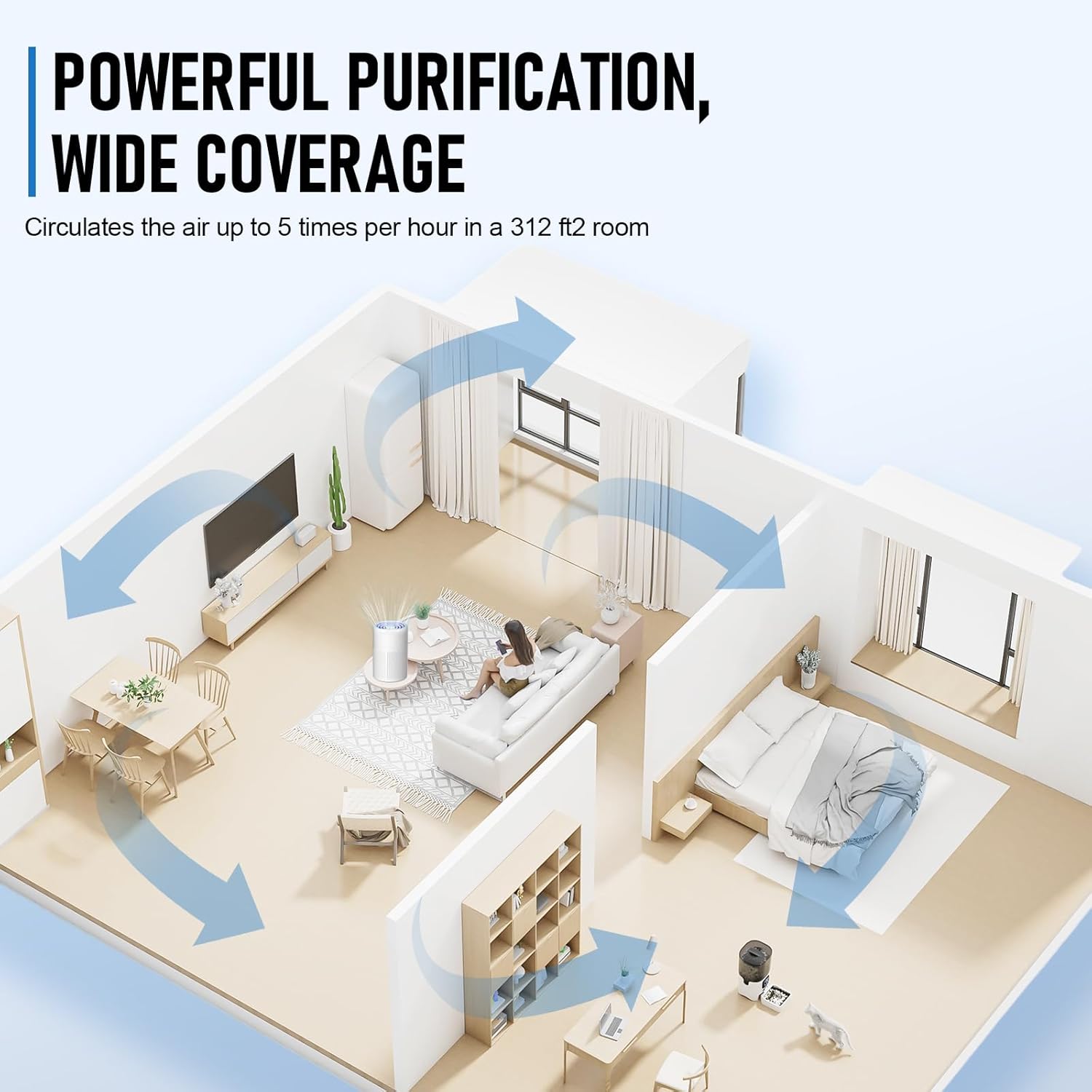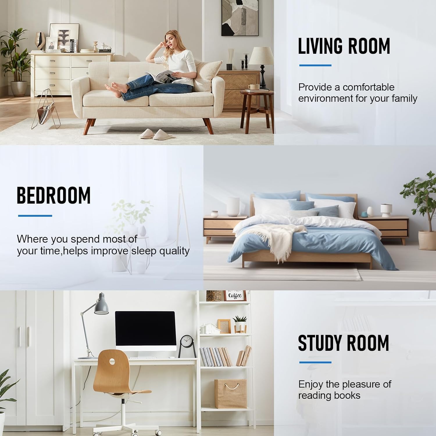 Mit einer effektiven Reinigungsfläche von bis zu 20 Quadratmetern (215 Quadratfuß) ist das Gerät ideal für Apartments, kleine Wohnungen oder einzelne Zimmer. Es arbeitet leise und effizient, ohne störende Luftströmungen oder Zugluft zu erzeugen – ideal auch für empfindliche Personen oder Kleinkinder.