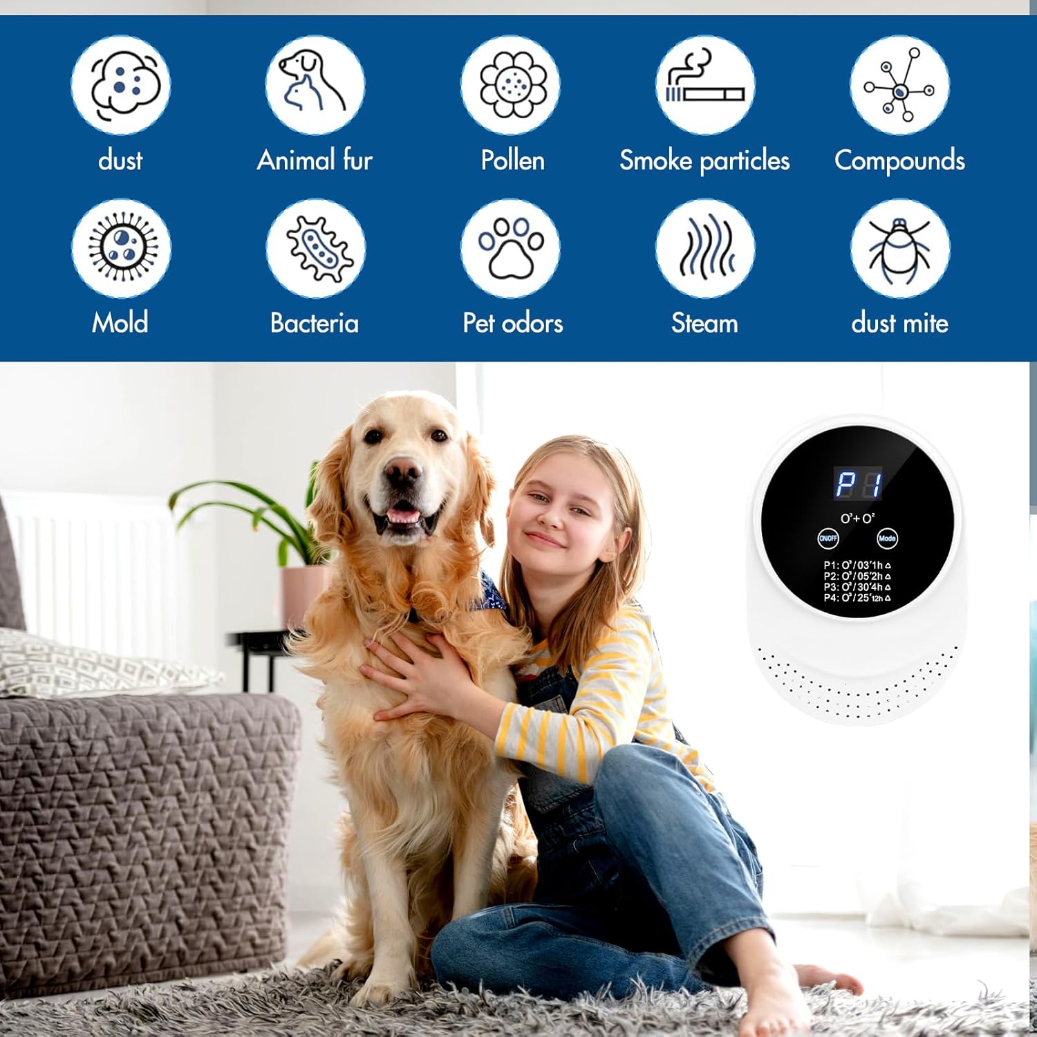 - Doppelte Wirkung: Kombinierte Ozon- und Negativ-Ionen-Technologie für maximale Luftreinigung