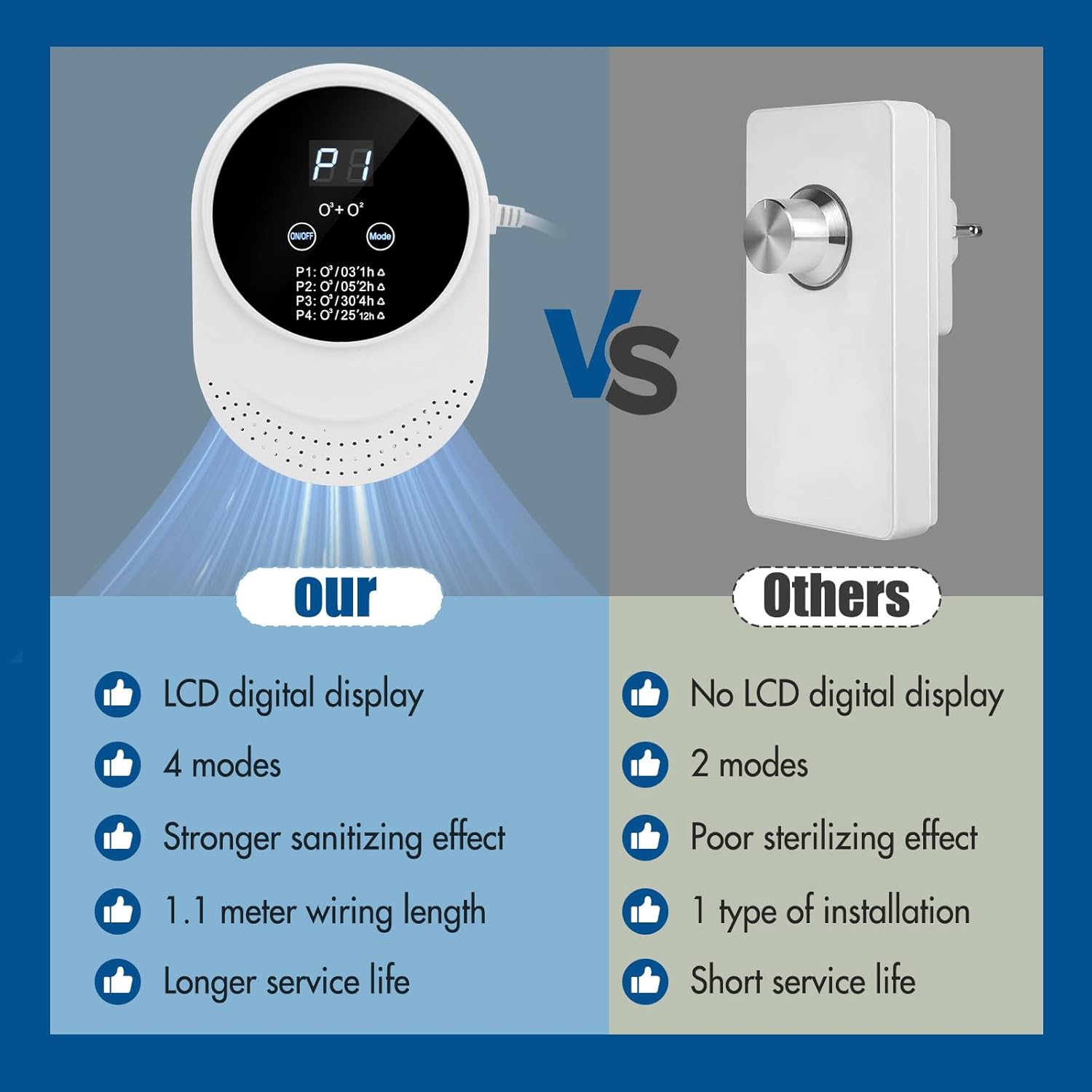 - Sichere Anwendung: Kontrollierte Ozonfreisetzung, Timer-Funktion, Überhitzungsschutz