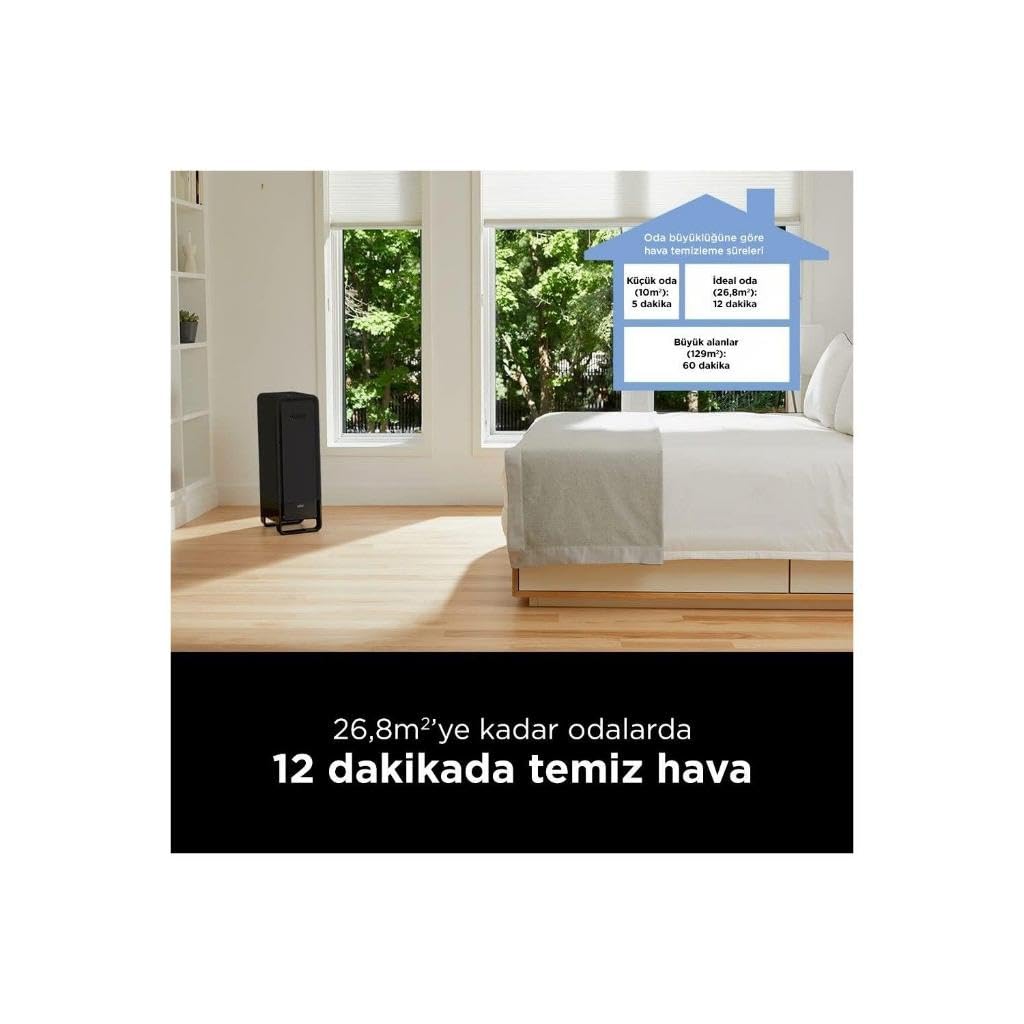 Der Braun Scan & Clean Air Purifier überzeugt nicht nur durch seine intelligente Sensorik und sein Filtersystem, sondern auch durch seine beeindruckende Leistung. Mit einer Clean Air Delivery Rate (CADR) von 315 m³/h ist das Gerät in der Lage, die Luft in Räumen von bis zu 129 m² effektiv und schnell zu reinigen. Das bedeutet, dass die gesamte Luftmenge eines durchschnittlichen Wohnzimmers mehrmals pro Stunde durch das Filtersystem geleitet wird – für eine konstant hohe Luftqualität.