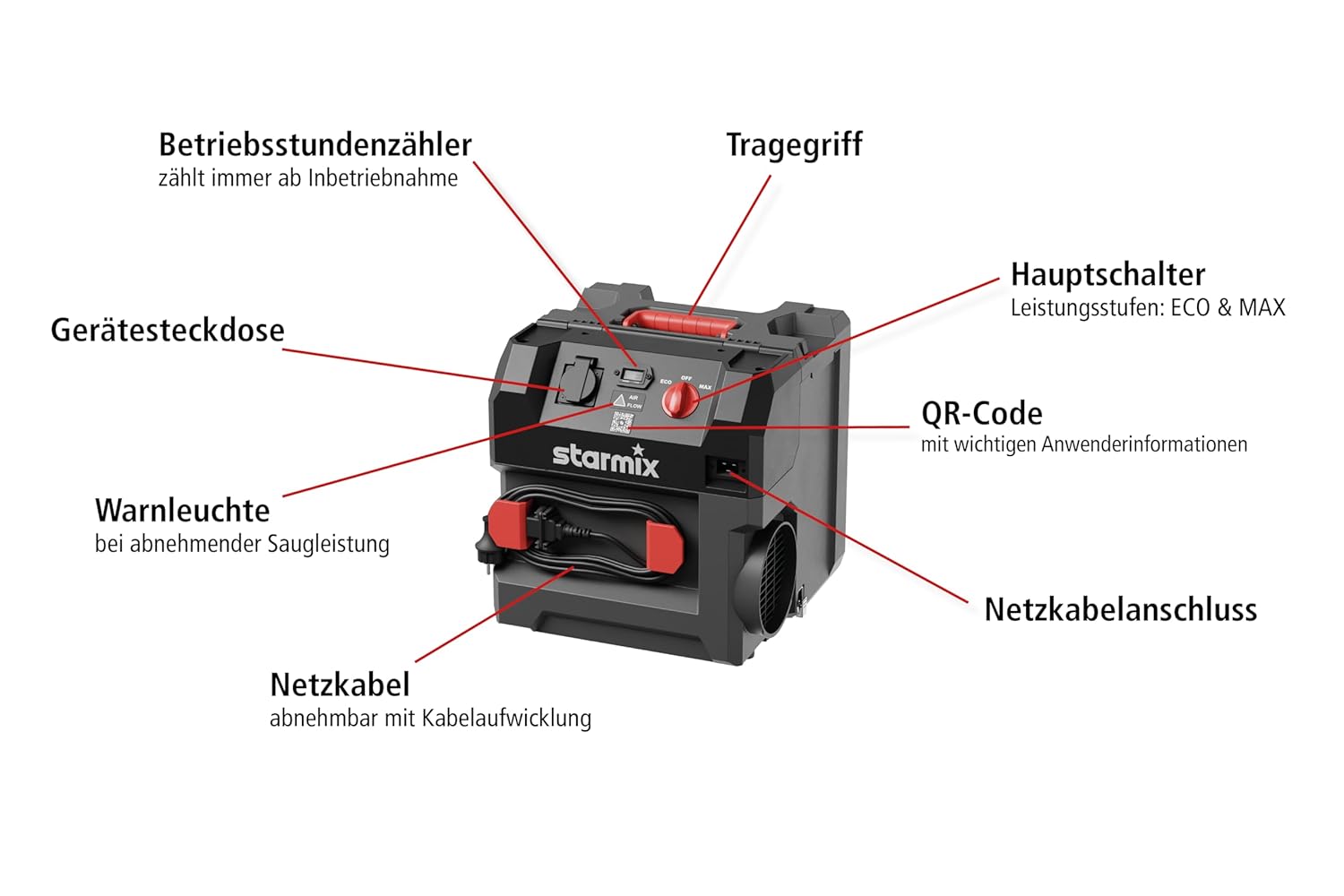 Staub ist nicht gleich Staub – besonders auf Baustellen entstehen unsichtbare Gefahren, die tief in die Lunge eindringen und langfristig schwere gesundheitliche Schäden verursachen können. Der Starmix Aeroxx Luftreiniger für Baustellen ist mehr als ein technisches Gerät: Er ist ein Schutzschild für Ihre Gesundheit, ein Garant für saubere Luft und ein unverzichtbarer Partner bei jedem Projekt, bei dem feinste Partikel in die Luft geraten. Entwickelt für den harten Alltag auf Baustellen, überzeugt der Aeroxx durch maximale Effizienz, durchdachte Ergonomie und eine Filterleistung, die Maßstäbe setzt.
