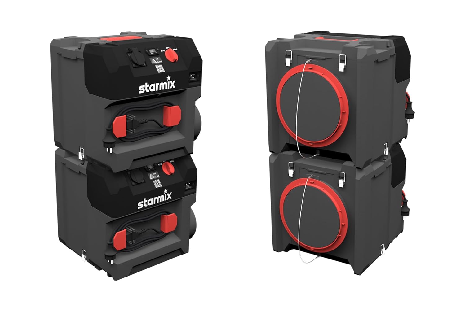 Ein besonderes Highlight des Starmix Aeroxx ist sein modulares System, das maximale Flexibilität bei der Luftreinigung ermöglicht. Je nach Raumgröße und Anforderung können mehrere Geräte miteinander kombiniert werden – ideal für größere Baustellen oder längere Arbeitsbereiche. Empfohlen wird ein Luftreiniger pro 13 m², sodass Sie durch die Kombination mehrerer Geräte auch große Flächen effizient reinigen können.
